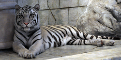 Los tigres blancos son ejemplares de tigre (Panthera tigris) con una condición genética que casi elimina el pigmento de su coloración normalmente anaranjada, aunque las rayas negras no se ven afectadas. Esto ocurre cuando un tigre hereda dos copias del gen recesivo para la coloración pálida: nariz rosa, ojos color azul hielo, y piel de color blanca crema con rayas negras, grises o de color chocolate.